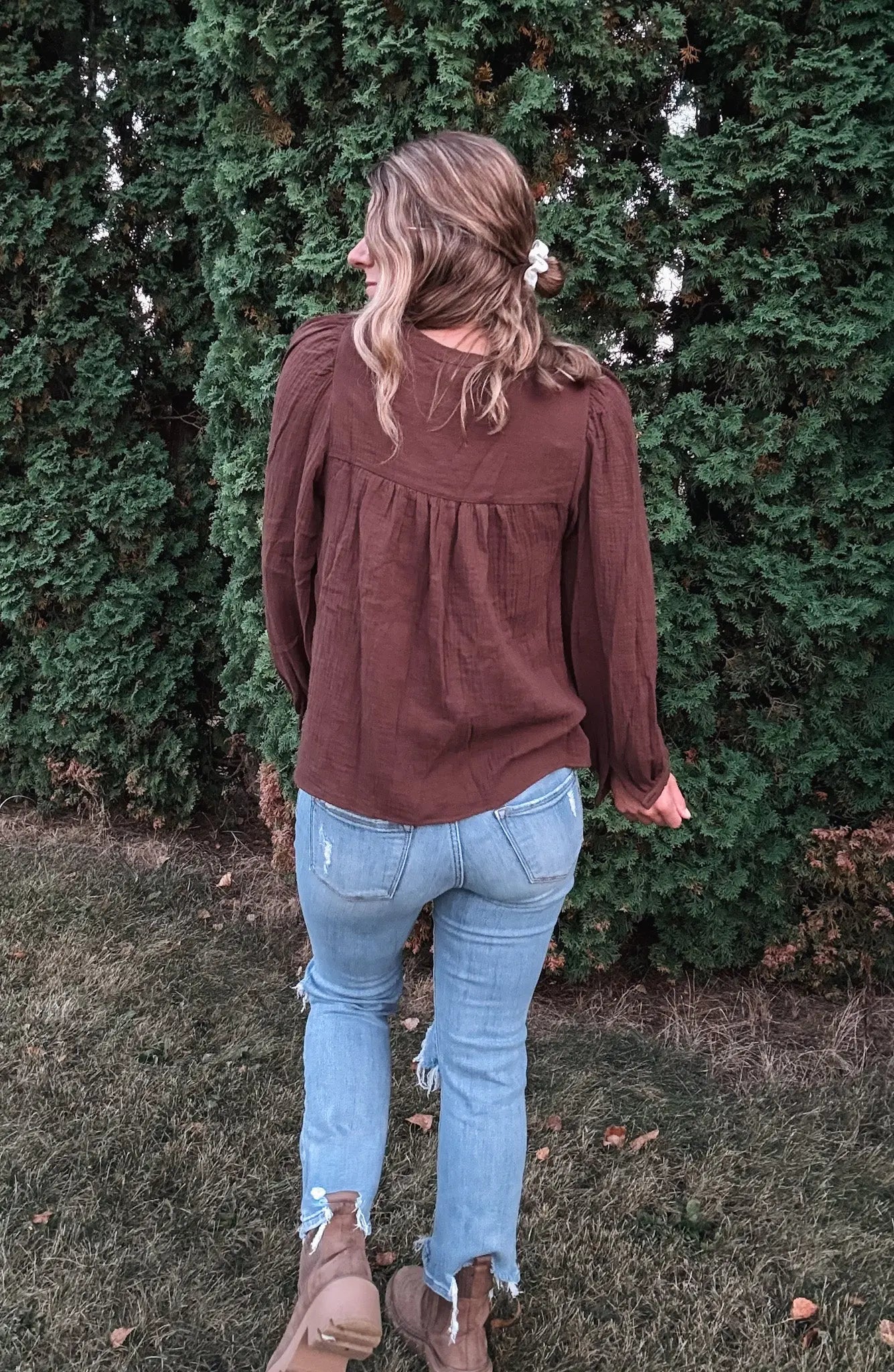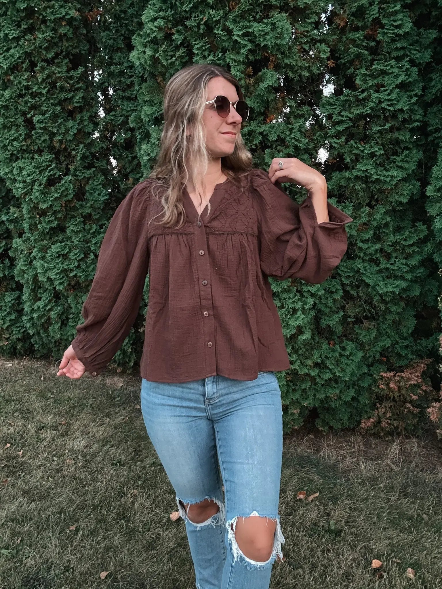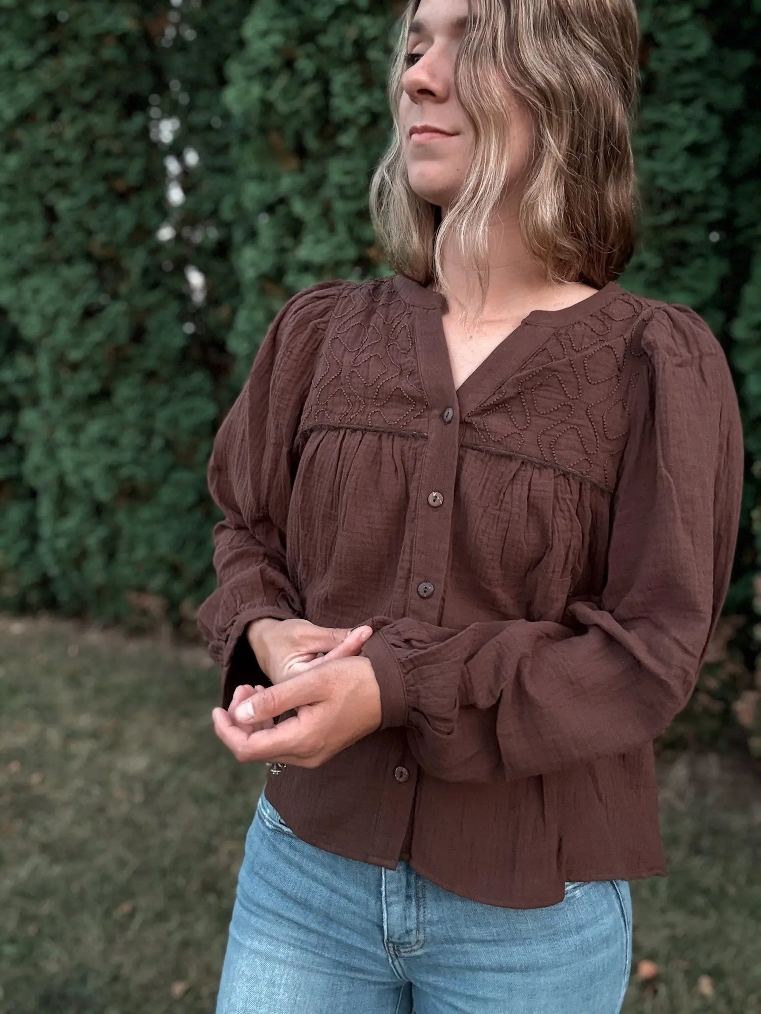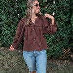 Chocolate Gauze Button Top
