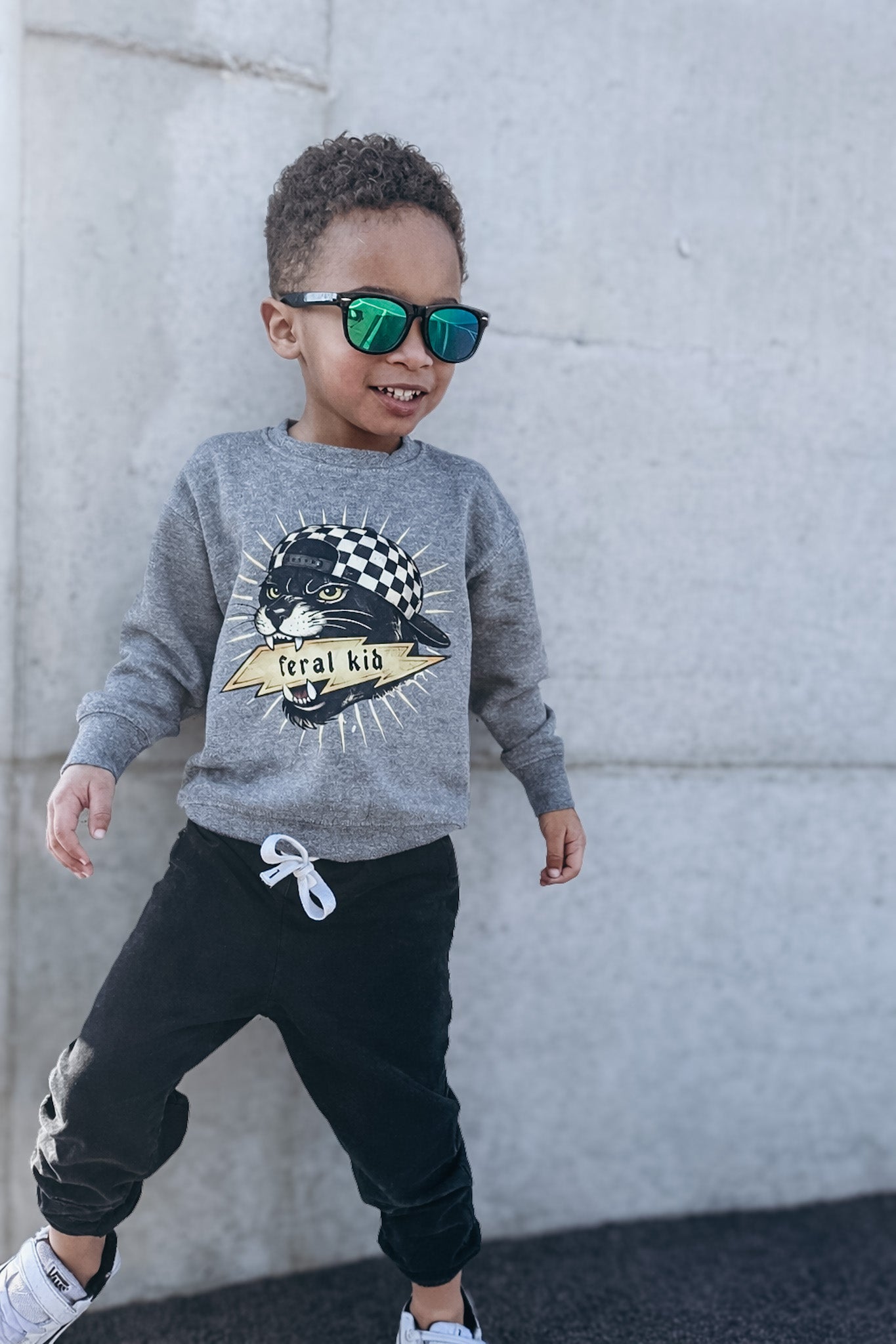 Let your little wild child roam free in this trendy crewneck! Soft, comfortable, and built for all-day adventures, it's the perfect companion for tiny explorers who march to the beat of their own drum. With a playful vibe that matches their untamed energy, this crew keeps them cozy whether they're causing mischief or conquering the backyard. Pure comfort meets pure personality.