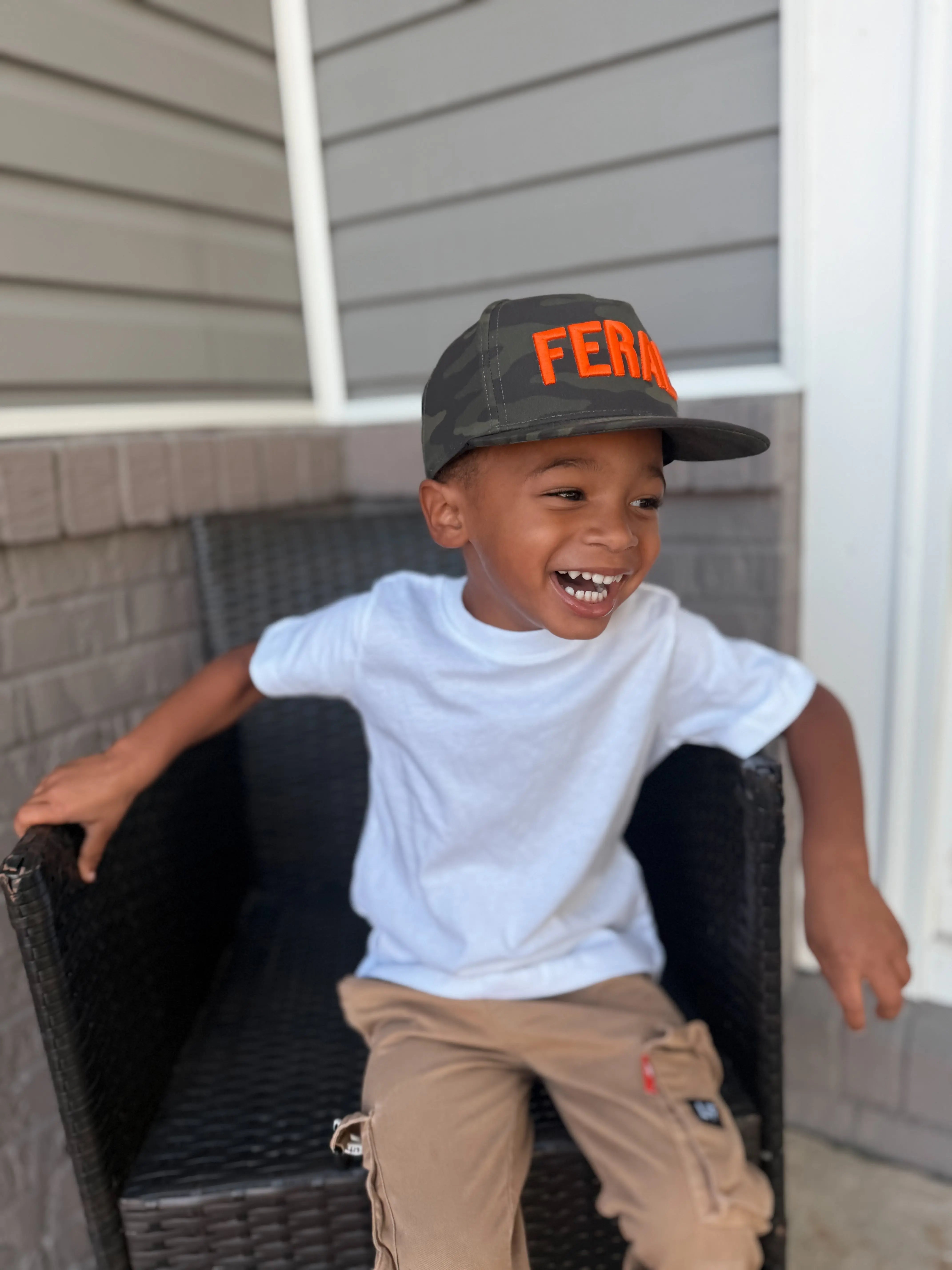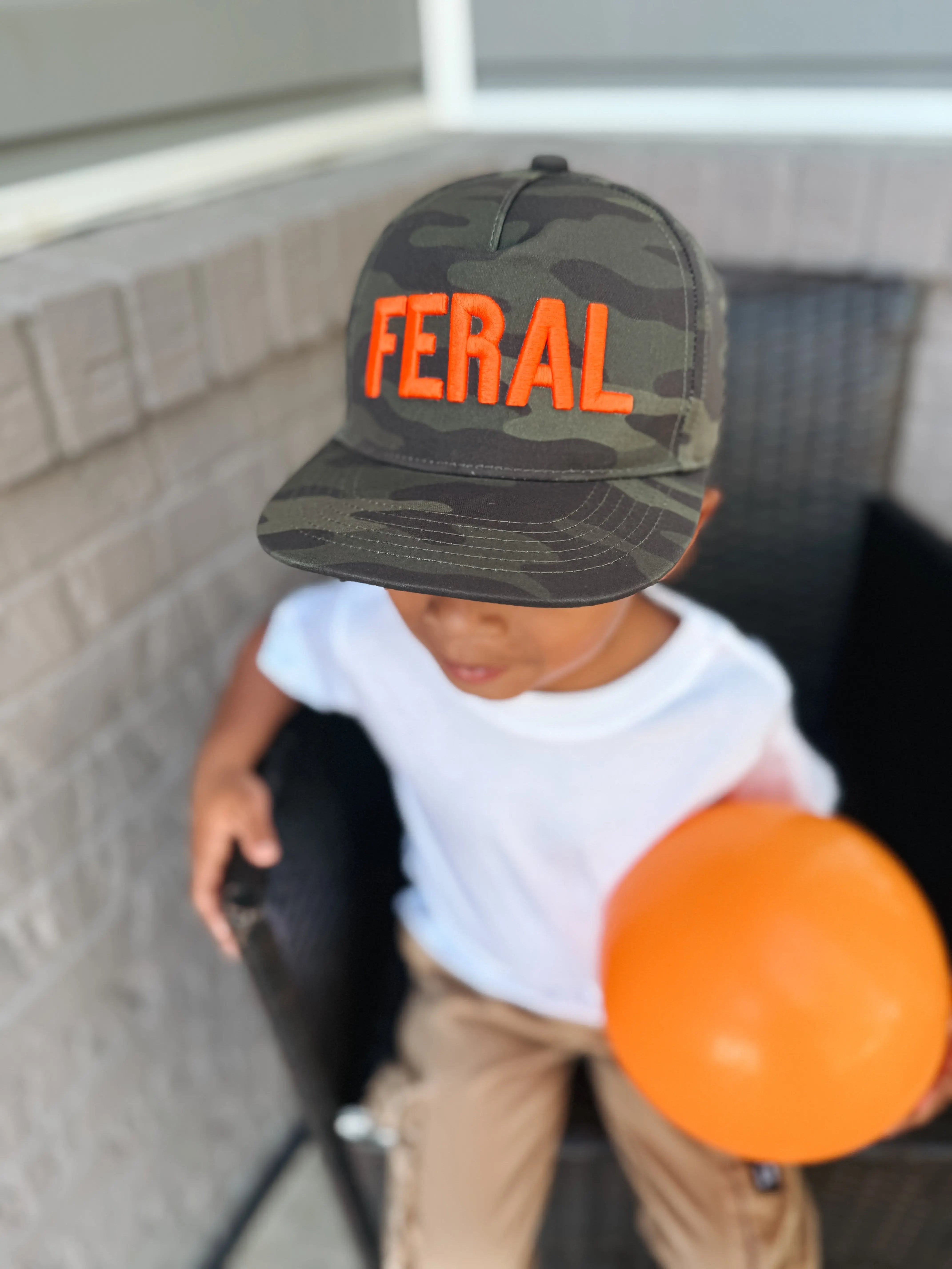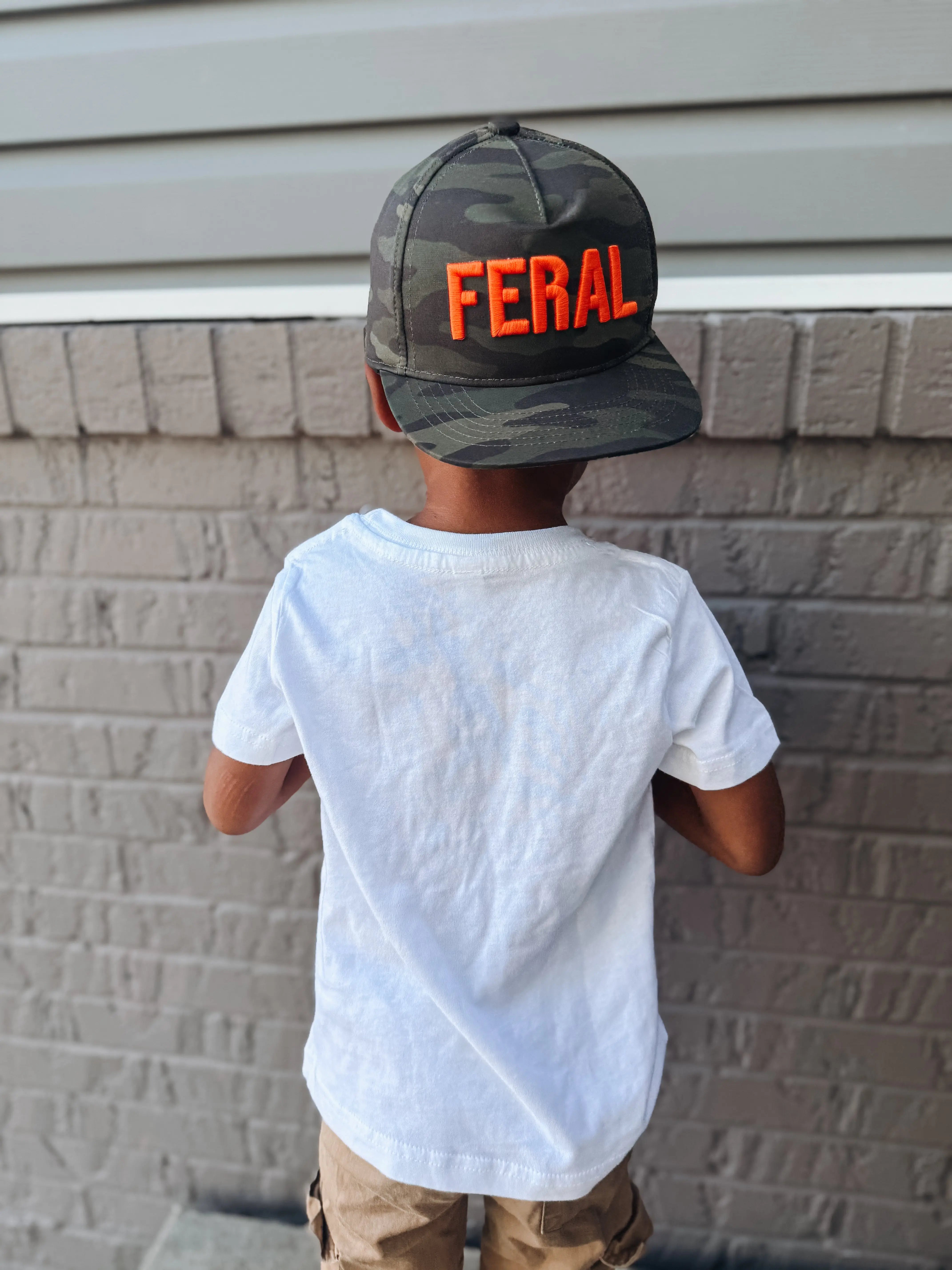 Get your kiddo ready for adventure with our Feral Kid Snapback! Designed for the most daring kids, this trendy camo hat features an original design and adjustable straps for the perfect fit. They'll be the coolest kid on the playground with this bold and stylish snapback! Fits children 2 to 8 years old!