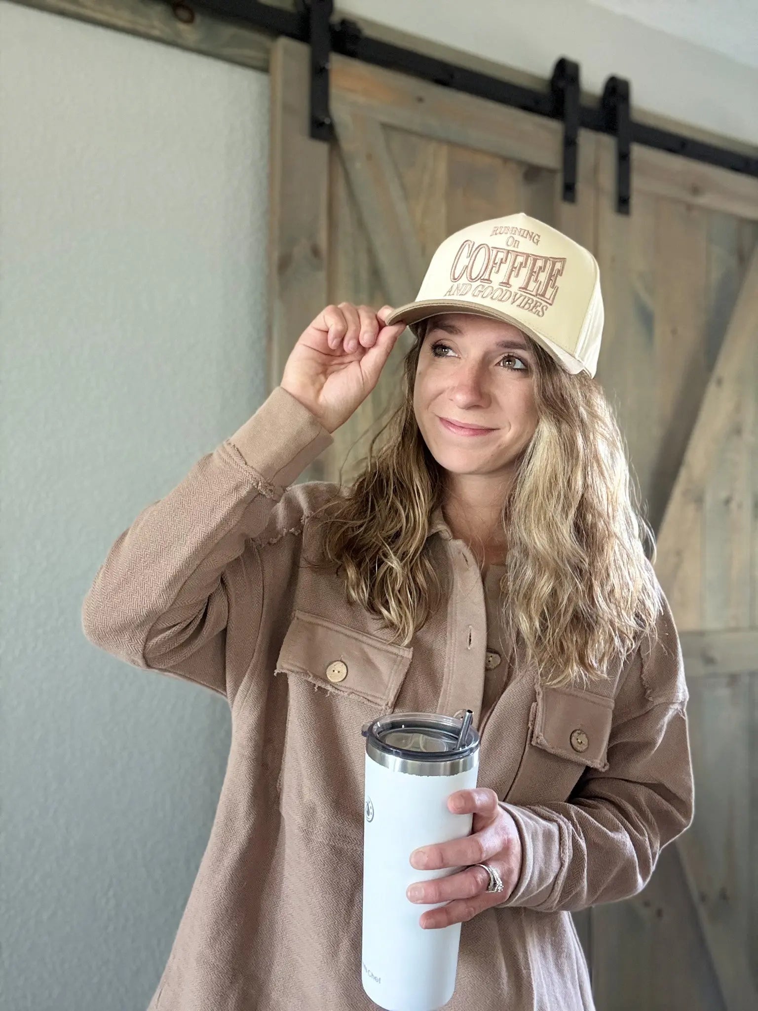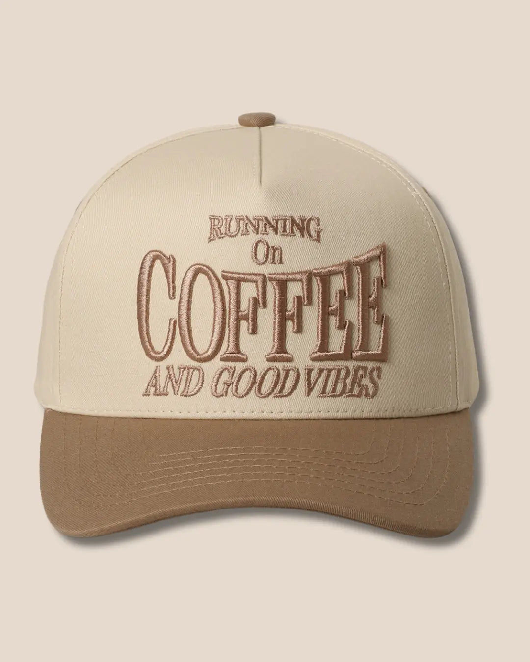-3D Letter Embroidered "Running on Coffee and Good Vibes"