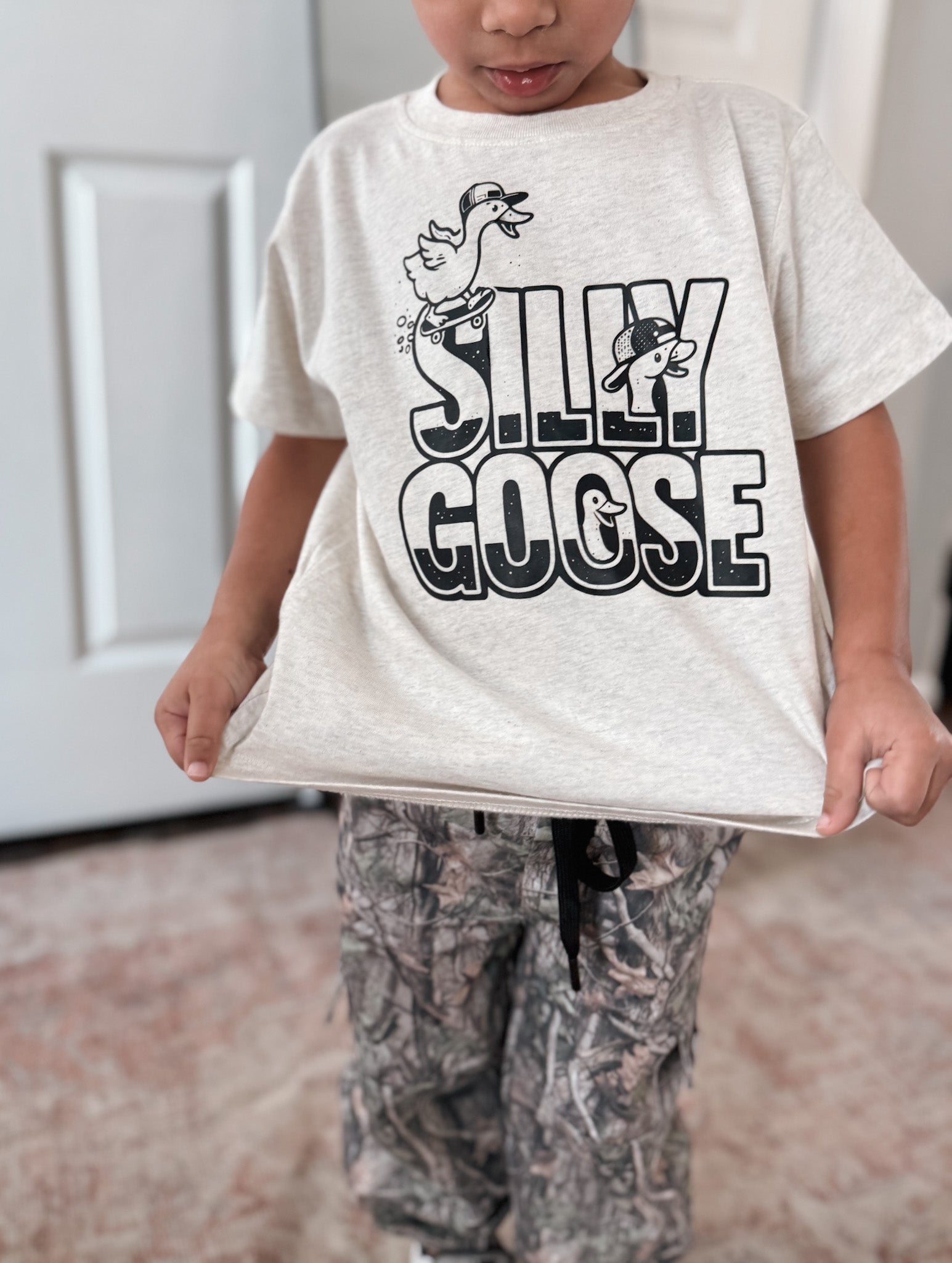 This playful tee is a guaranteed crowd-pleaser! Perfect for the silly goose in your life, it brings humor and charm to everyday wear. Soft, comfortable, and designed for kids who love to make people laugh, this boy's tee celebrates that goofy, fun-loving spirit. Whether he's goofing around at school or hanging out with friends, he'll rock this lighthearted style with confidence. A wardrobe essential that proves the best outfits come with a side of silliness!