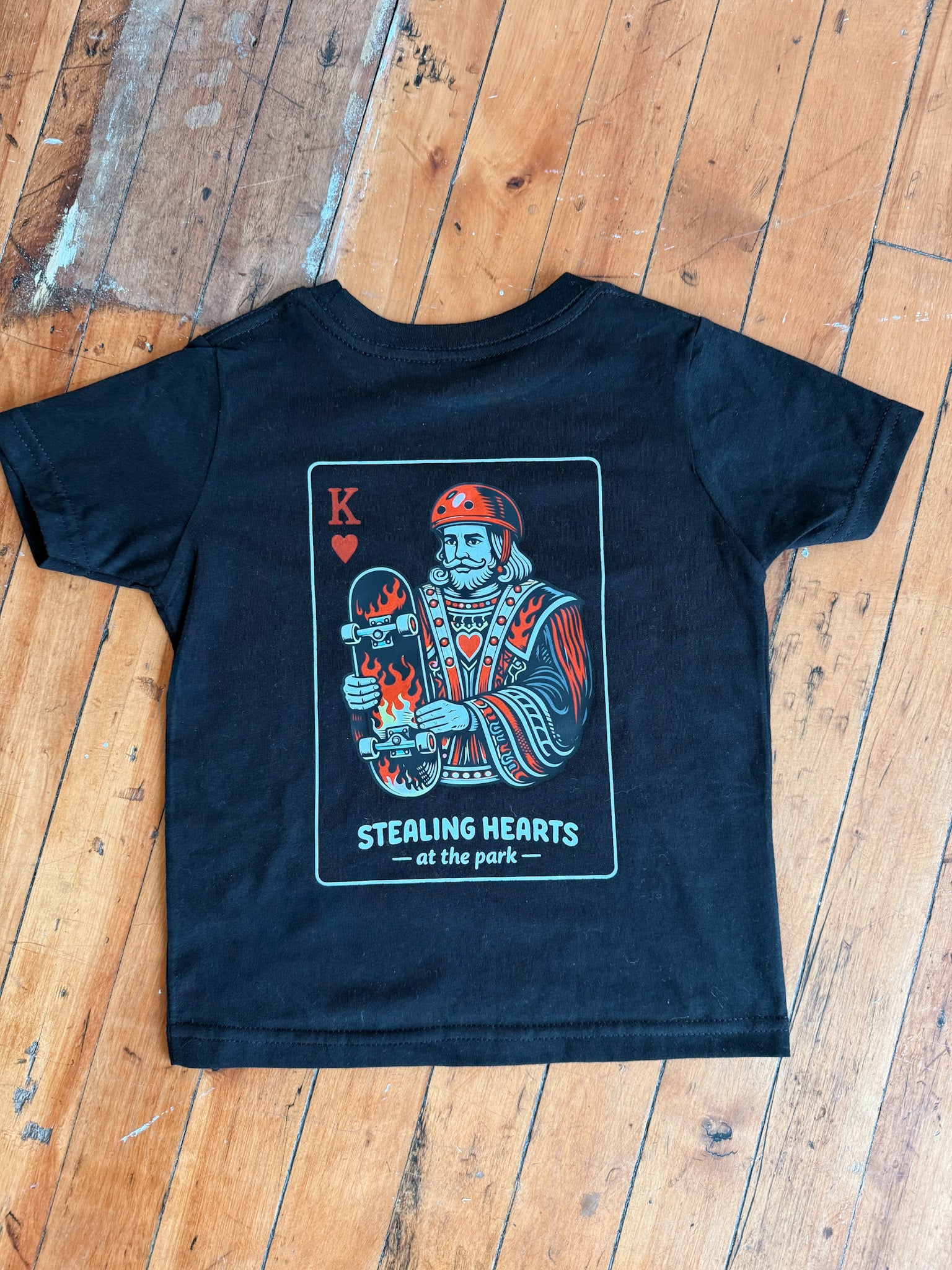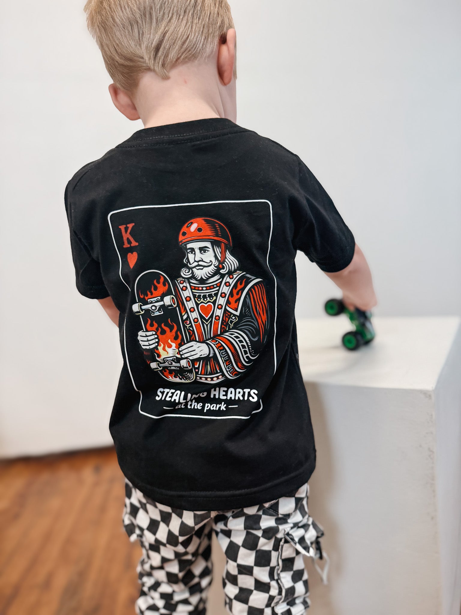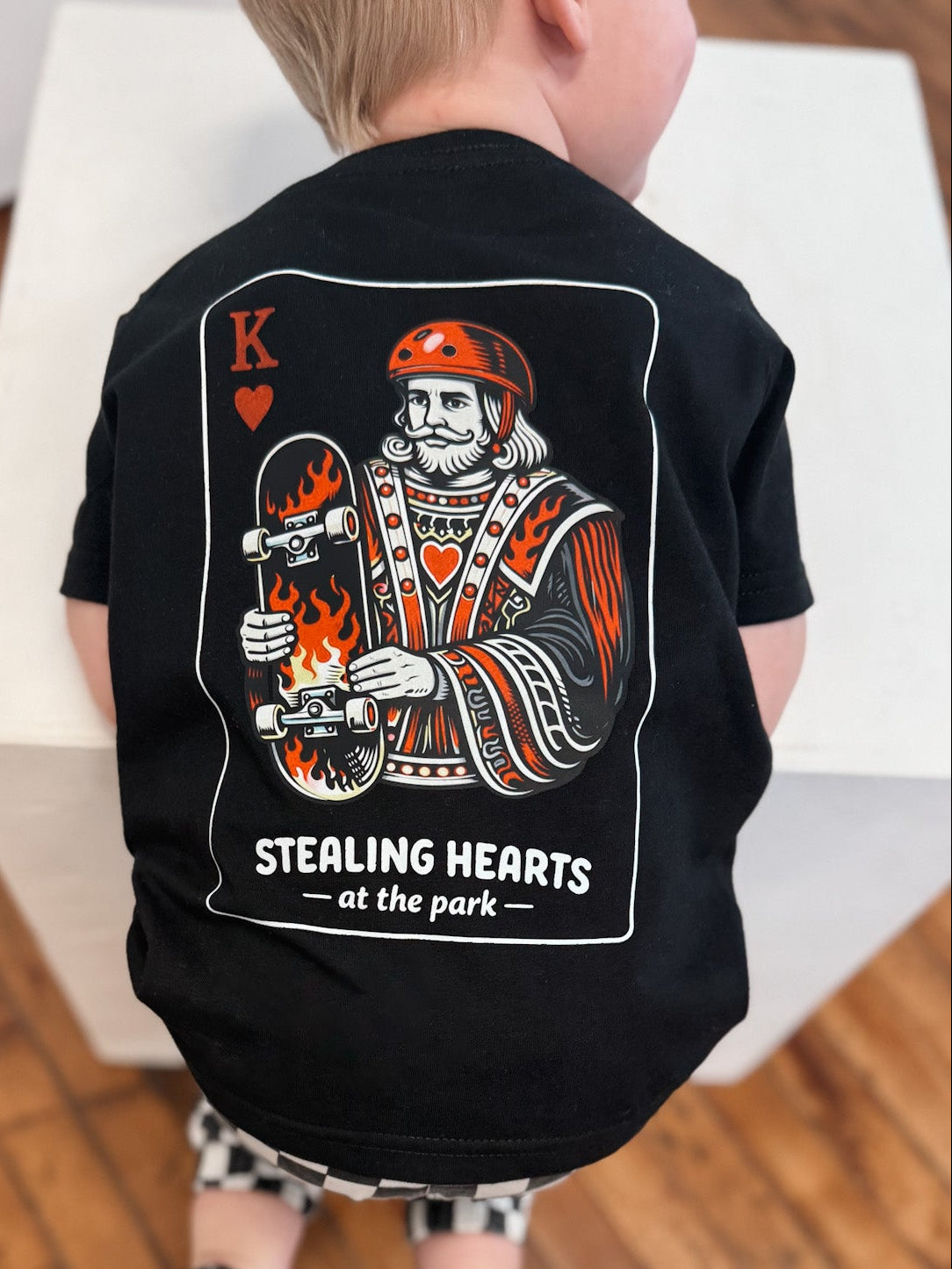 This Valentine's Day tee is made for the skater kid who steals his mama's heart.  With a playful design that celebrates love and cool-kid confidence, it's the perfect blend of sweet and rad. Crafted from soft, breathable fabric, it's comfortable enough for park sessions, hangouts, or any adventure. Give him a tee that matches his fearless personality and fun-loving spirit this Valentine's season.