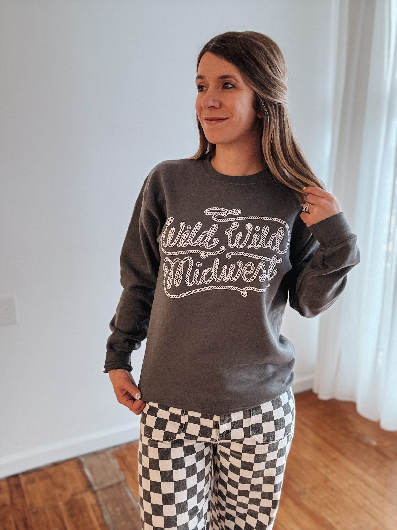 Embrace your inner adventurer with the Wild, Wild Midwest Crewneck—a cozy essential that celebrates the spirit of the heartland. Crafted from soft, comfortable fabric, this crewneck sweatshirt is perfect for casual days, outdoor adventures, or lounging at home. Soft, stylish, and ready for anything.